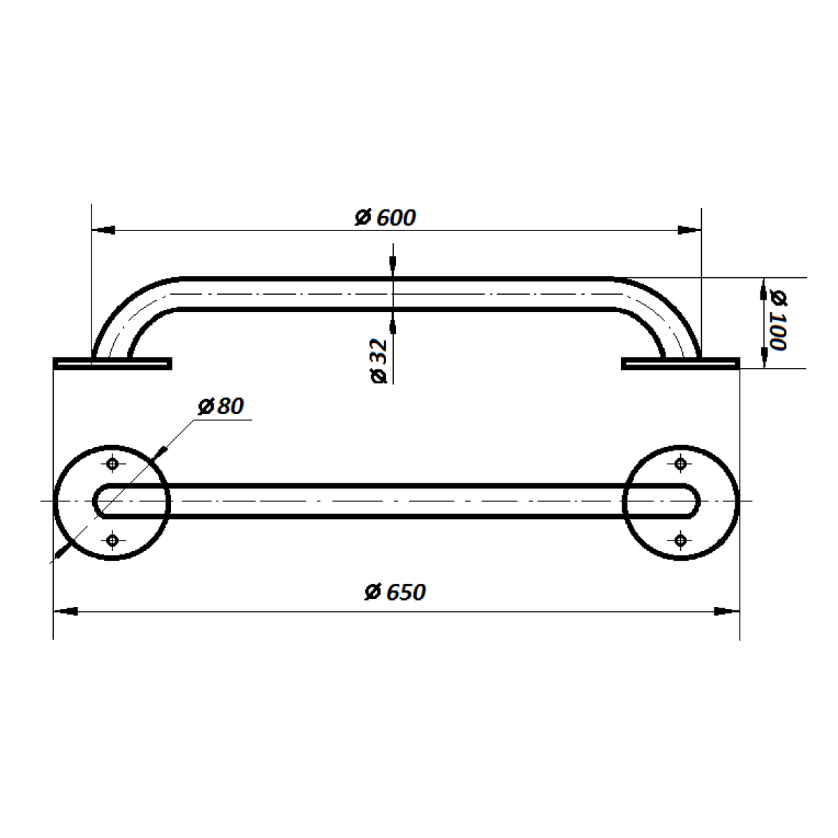 Поручень прямий пристінний, Ø 32мм - 600мм