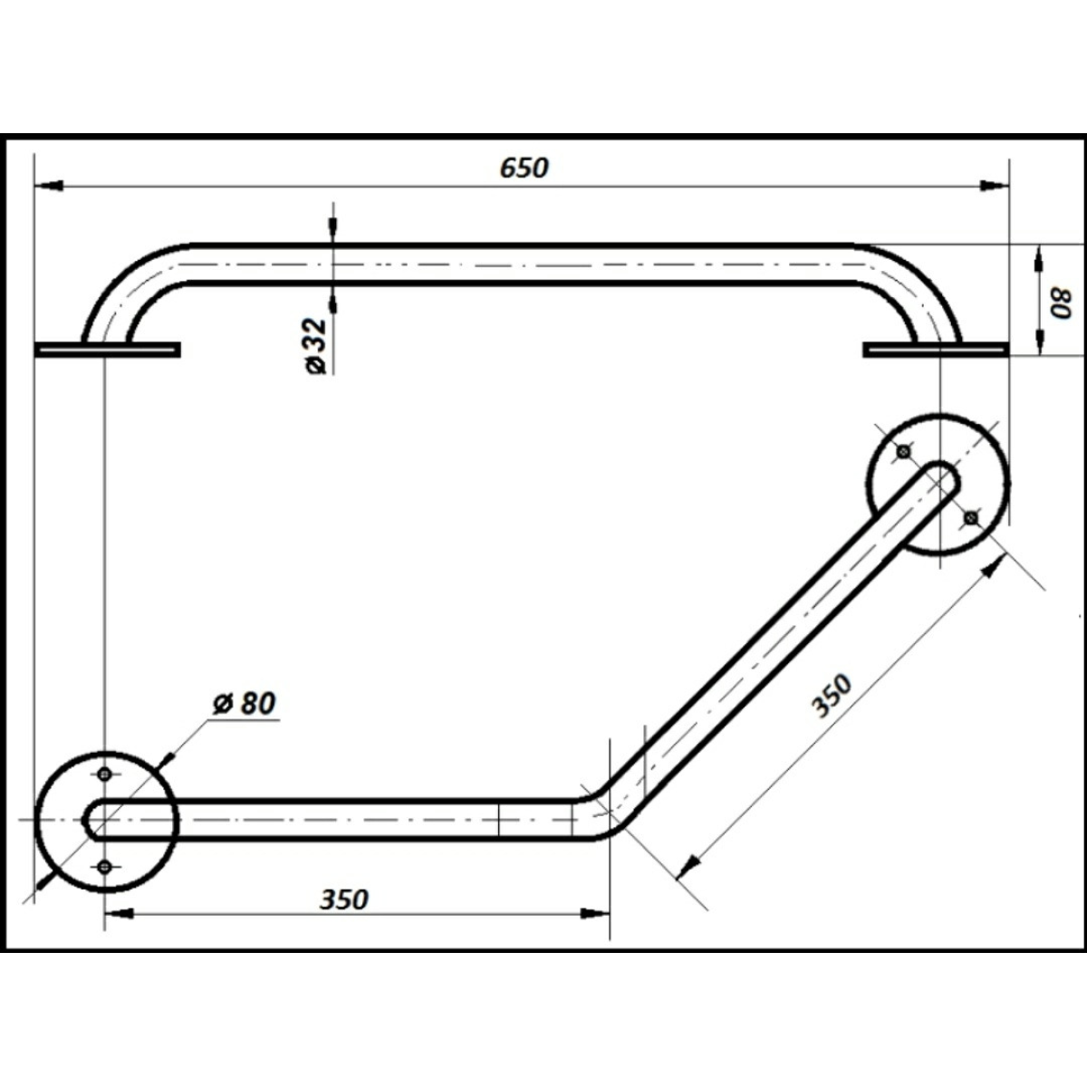 Поручень пристінний кутовий, Ø 32мм - 350х350мм