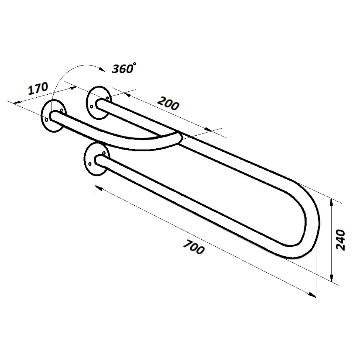 PM-02 Поручень настінний посилений з поворотною ніжкою, Ø 32мм - 700мм