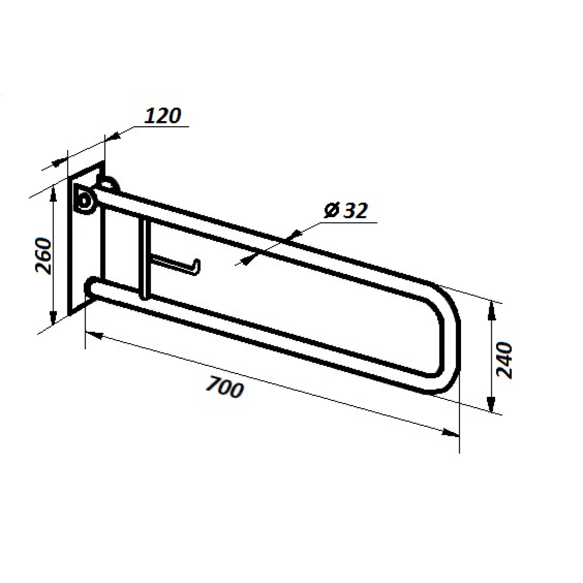 PU-01b Поручень настінний відкидний з тримачем туалетного паперy, Ø 32мм - 700мм