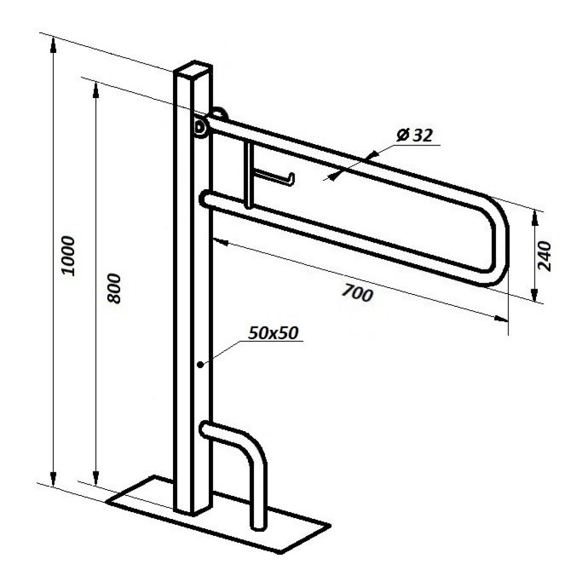 Поручень для підлоги відкидний з тримачем туалетного паперу, можливо додати кріплення в стіну, Ø 32мм - 1000х700мм