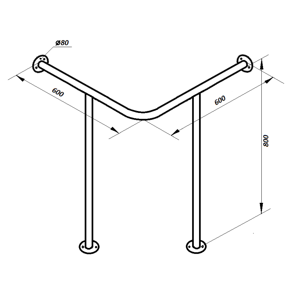 PM-04 Поручень опорний для мийки кутовий “стіна-підлога“, виготовляється під розмір мийки, Ø 32мм