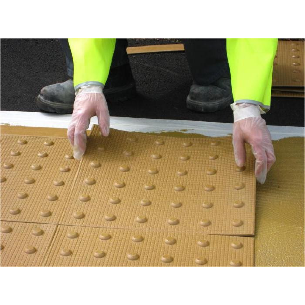 Тактильна самоклеюча плитка запобіжна “STOP“, 420мм х 420мм