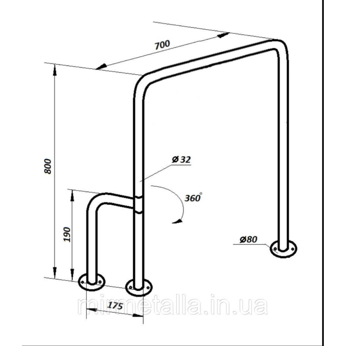 Поручень в туалет П-подібний з поворотною ніжкою 360° для людей з інвалідністю,Ø 32мм - 800х700мм